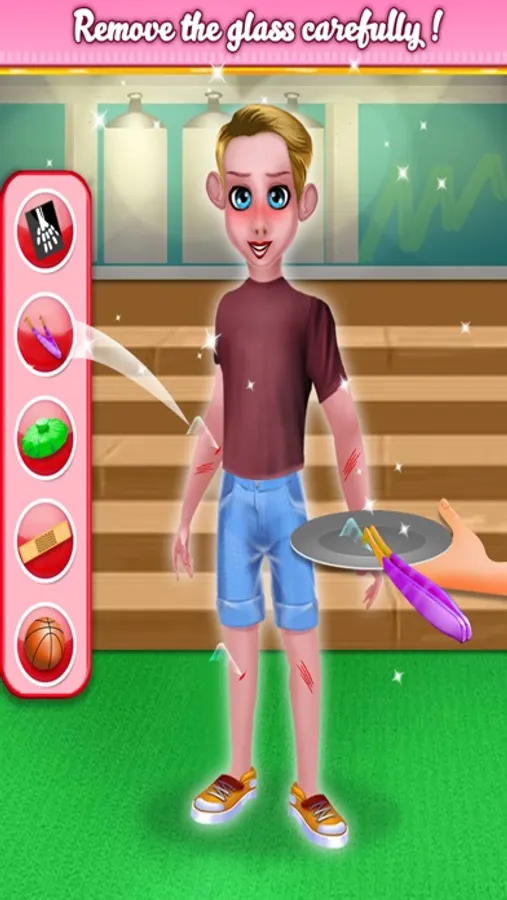-The gorgeous boy was playing at the football court ,suddenly he got injured.help him to get back in normal situation,Do X-ray to check his born is cracked or not.Do plaster on his leg, be a Doctor for him