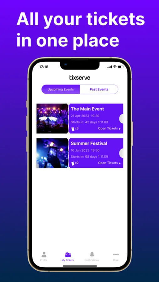 Your tickets are delivered straight into the Tixserve app - meaning there’s no need to print tickets or wait for them to arrive in the post.