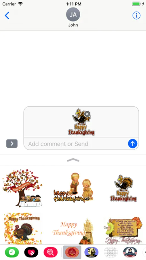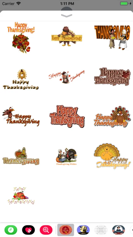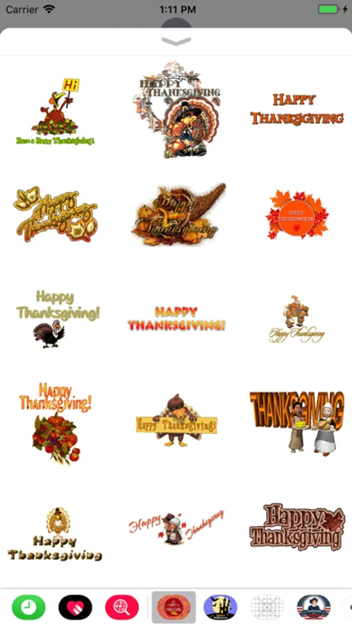 This app offers you a series of Thanksgiving Day stickers for your chat. Get amaging animated Thanksgiving Day stickers for iMessage on iOS phone and share the stickers on Facebook, Whatsapp, Messenger and many more social networks.