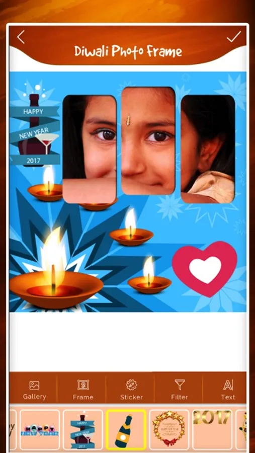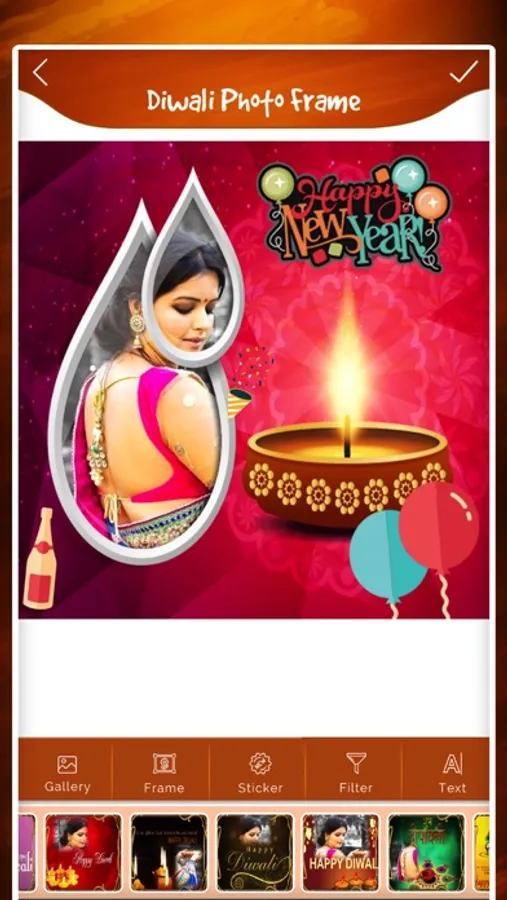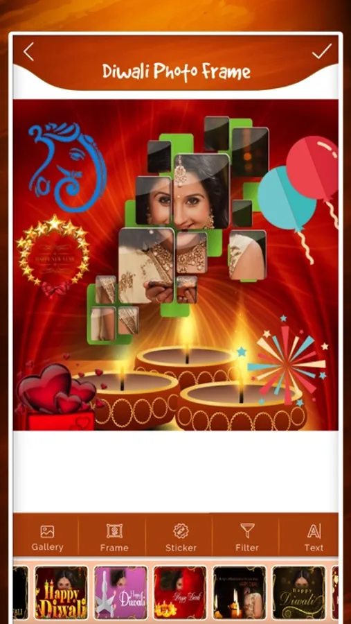 - Select photos from Gallery album. Select Best Diwali Frame that suitable your photos.