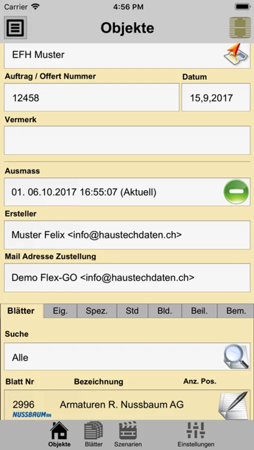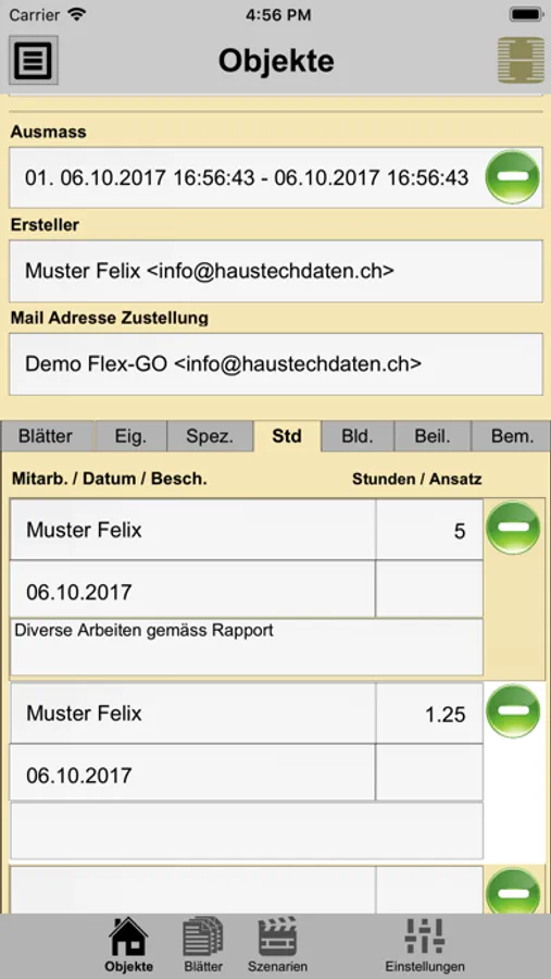 Sie haben alle Ausmassblätter stets bei sich, auch of ine. Für wiederkehrende Anwendungsbereiche (z.B. Boilerentkalkung) können die entsprechenden Ausmassblätter im Voraus im Büro zugeordnet werden. So haben Sie am Montageort mit einem Klick die richtigen Ausmassblätter zur Verfügung.