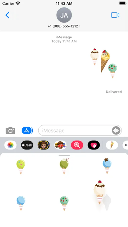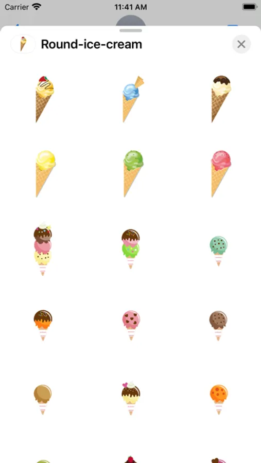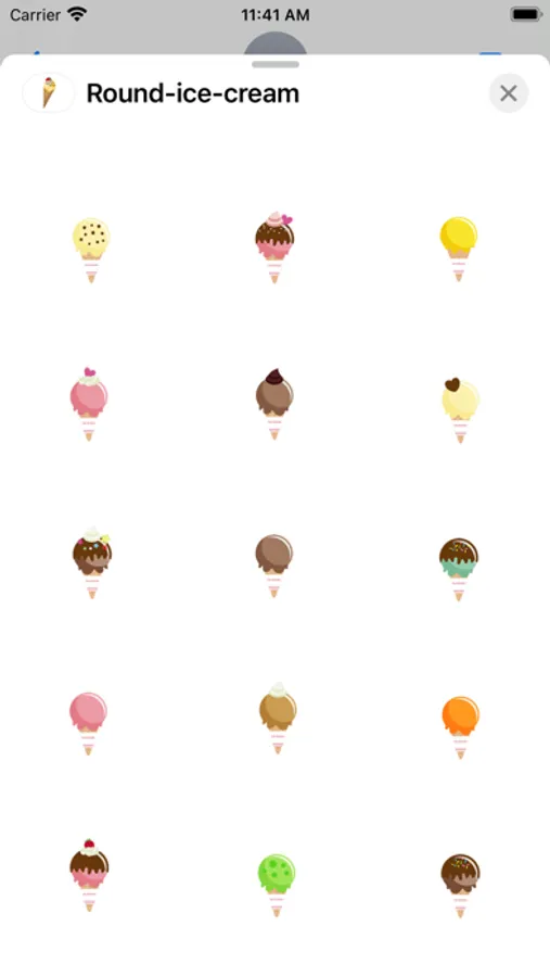 It is a cute, round ice cream, sticker that attaches to funny messages