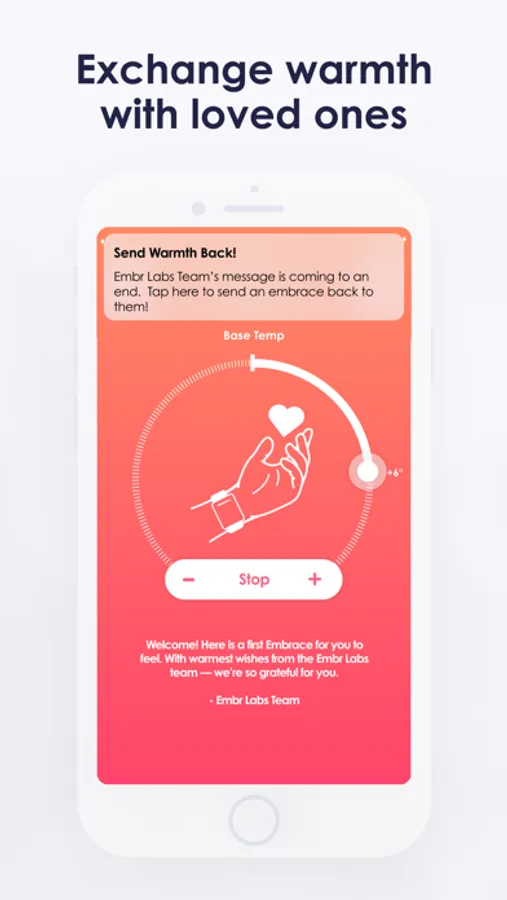 As your companion to the Wave bracelet, the Embr Wave app puts you in full control of your thermal wellness. Personalize your Wave’s temperature and duration. Choose between waveforms for improved comfort, relaxation, sleep and more. Best of all, the Embr Wave and its app is always evolving, giving you access to new features and frequent device updates.