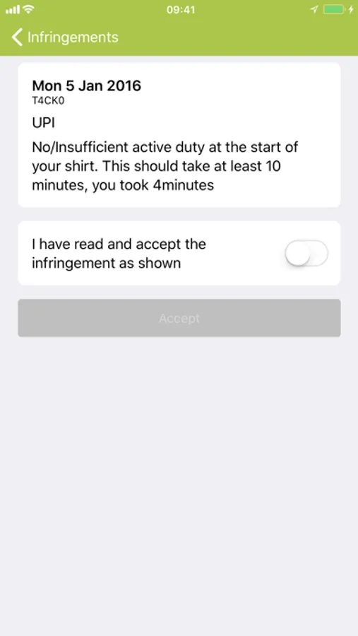 From within the app you are also able to view and acknowledge any infringements and accept them remotely to be displayed in the office immediately.