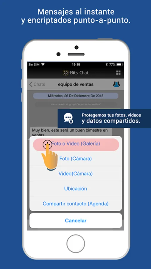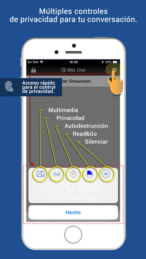 Q-Bits Chat es una aplicación de mensajería disponible para iPhone y otros teléfonos inteligentes. Q-Bits Chat usa la conexión a internet (4G/3G/2G/EDGE o Wi-Fi cuando sea posible) de tu teléfono. Con Q-Bits Chat puedes enviar mensajes a tus compañeros de trabajo, amigos y familiares. Usa Q-Bits Chat en vez de SMS para enviar y recibir mensajes, fotos, vídeos y mensajes de voz.