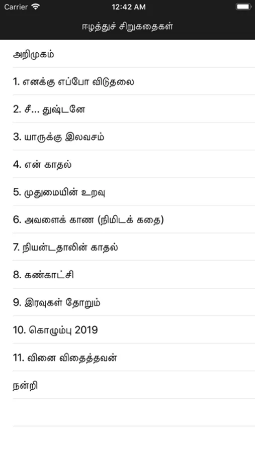 Eelathu sirukathaikal is an iOS app that consists of 12 short stories written by Eelam Tamil Mayooresan. Initially these stories were written on his blog and now it's available for you on your iOS powered devices.
