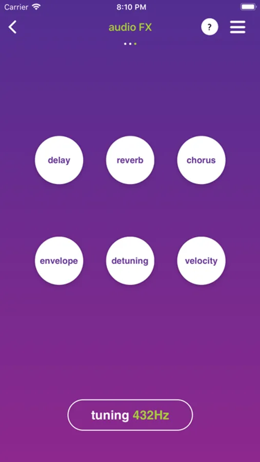 - Audio Fx: delay, reverb, chorus, envelope, velocity, detuning, 432/440 hz