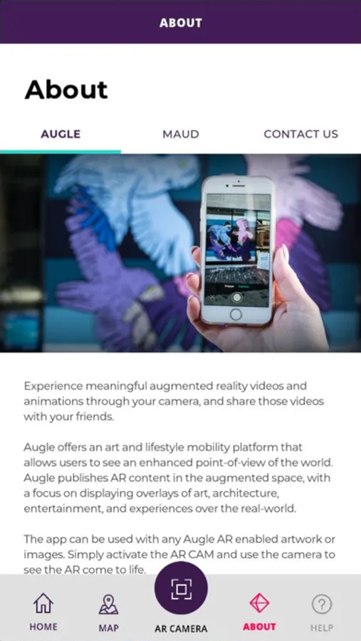 Augle offers an art and lifestyle mobility platform that allows users to see an enhanced point-of-view of the world. Augle publishes AR content in the augmented space, with a focus on displaying overlays of art, architecture, entertainment, and experiences over the real-world.