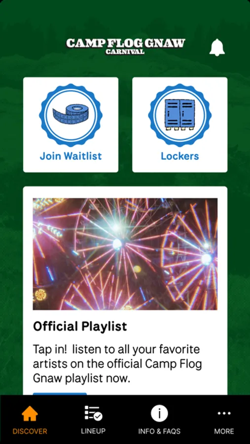 The 2023 official Camp Flog Gnaw Carnival app is here. Explore the festival lineup, build your custom schedule, and more. Register your wristband in the app prior to visiting the festival for the smoothest entry & to secure your investment. Follow in-app instructions to complete your activation.