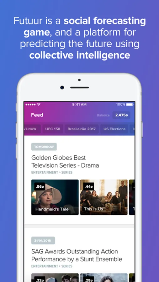 On Futuur players compete to predict future events across a broad range of topics, including politics, finance, sports, science, and entertainment.