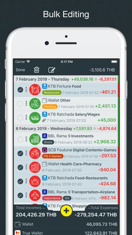 - Bulk Editing lets you simultaneously modify multiple transactions at once