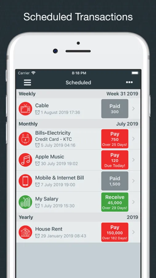 - Scheduled Transactions, create recurring scheduled transactions supports daily, weekly, monthly and yearly