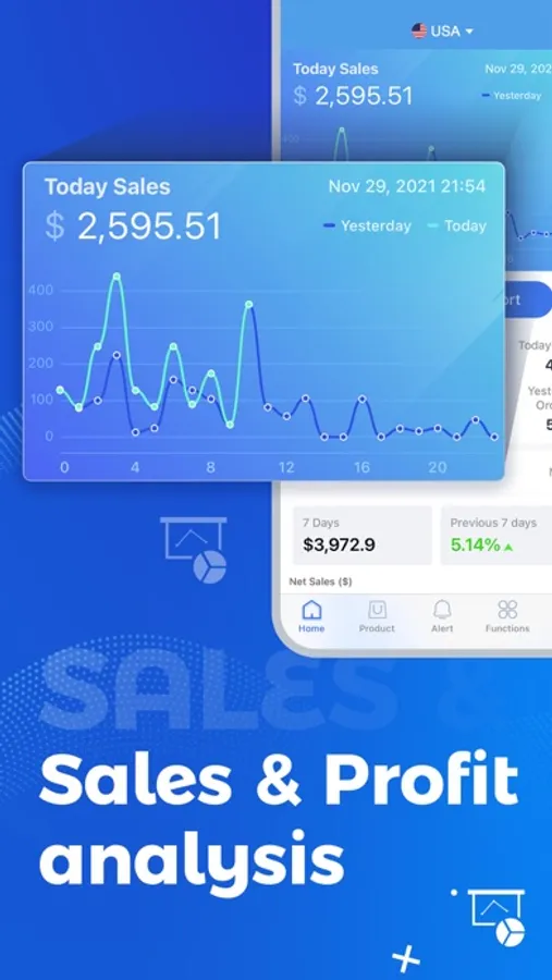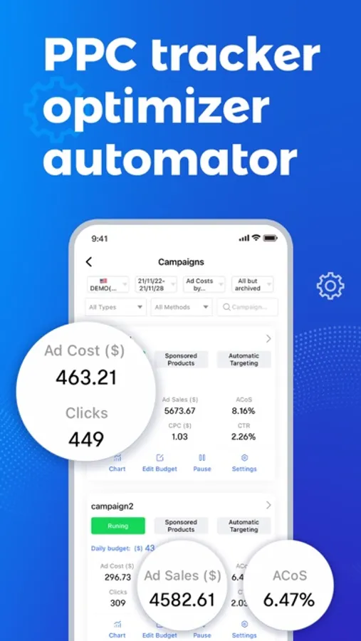 With functions to monitor, analyze, and present data of your Amazon business, including sales, keywords and search terms, PPC Ads, cost & revenue, FBA inventory status, your true profit and more, you can also create, start, pause, and edit your PPC campaigns just like on Amazon seller central.
