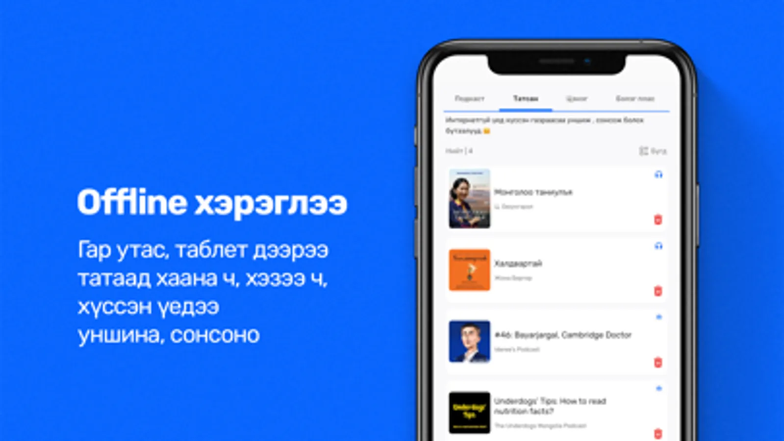 Оффлайн хэрэглээ - Интернеттэй үедээ нэг татаж аваад, сүлжээгүй, интернетгүй үед, аян зам, хөдөө зэрэг хаана ч уншиж, сонсож болно.