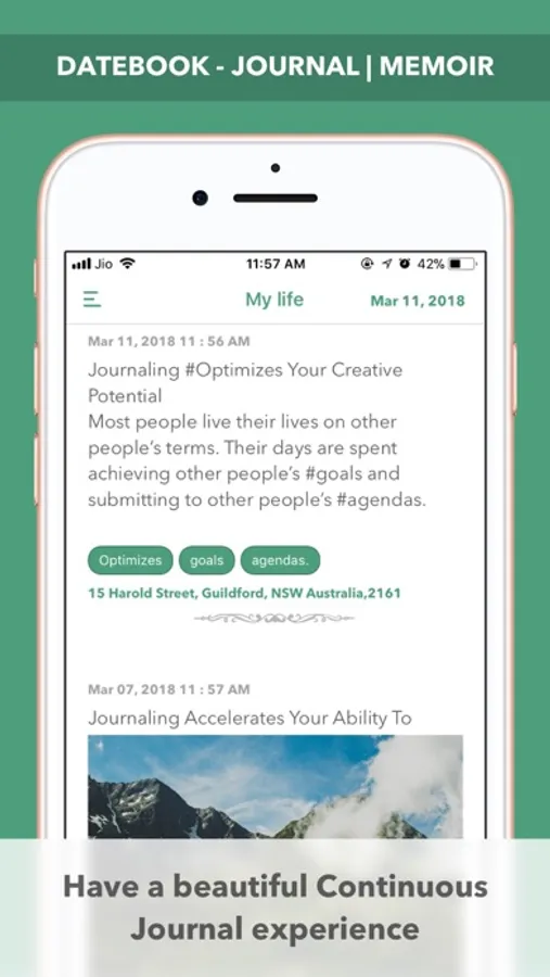 Attach your current location with each journal entry and make your memories more vivid. You can allow DateBook to access your current location automatically and save it with your journal. You also have the option for searching for a location manually with a map and save the location with your journal.