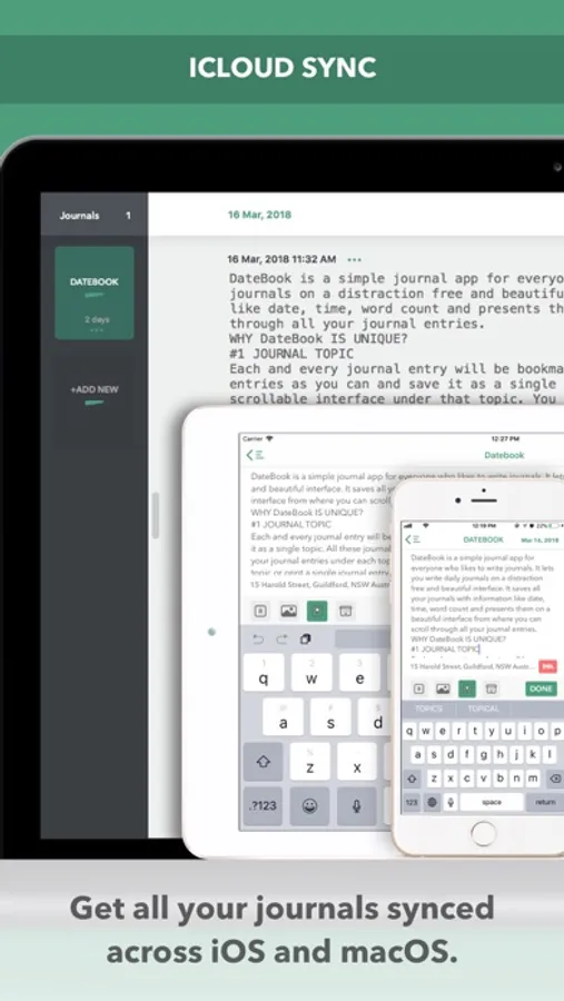 Get your journals synced across all your macOS and iOS easily via iCloud.