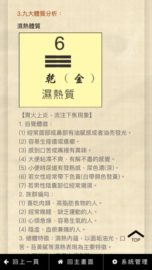 中醫體質辨識精準管理系統CMBody Management System,本套分析系統為世界國際管理學會總會長陳秋隆教授率APP資訊研發團隊,經多年數萬次的測試檢驗製作完成的雲端電算管理系統,已突破傳統中醫四診心法八綱辨證需長期累積經驗才能學會的體質辨識技能。