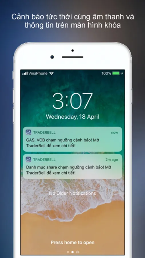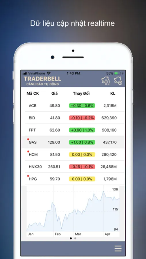 TraderBell là ứng dụng cảnh báo chứng khoán tự động giúp nhà đầu tư bám sát diễn biến thị trường và quản trị rủi ro với các tiện ích sau: