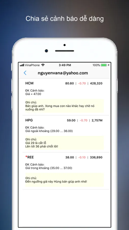 - Automatically notification: Investors can get realtime notifications on smart phone when their stocks are meet some conditions at specified price or volume.