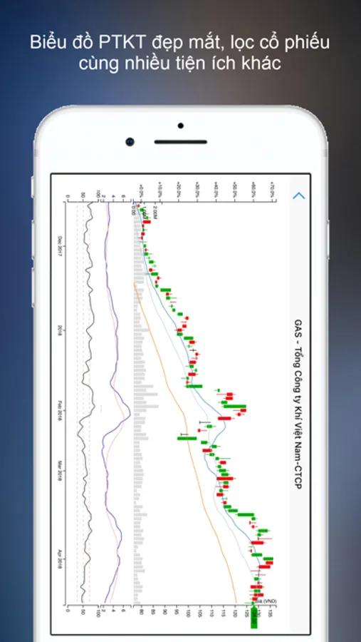 - Cung cấp biểu đồ phân tích kỹ thuật đẹp mắt có khả năng tương tác với nhiều chỉ báo: OHLC, SMA, EMA, MACD, RSI.