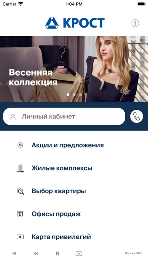 Приложение для тех, кто желает быстро и удобно подобрать квартиру в жилых комплексах Концерна «КРОСТ» и быть в курсе последних новостей и специальных предложений.