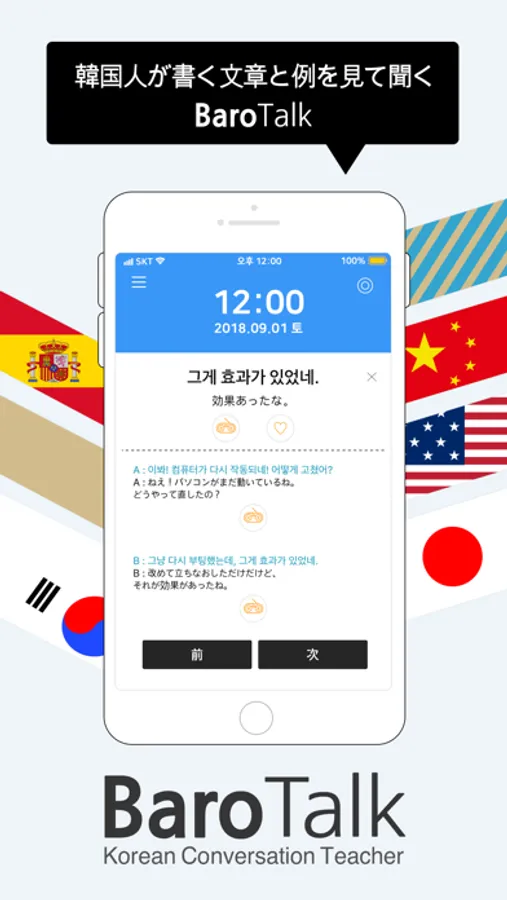 #私たちの「BaroTalk-韓国語会話」は、韓国人が実生活で使用する内容を提供しています。一緒に、適切な例文もあるので、実生活での会話を開始するに役立ちます。
