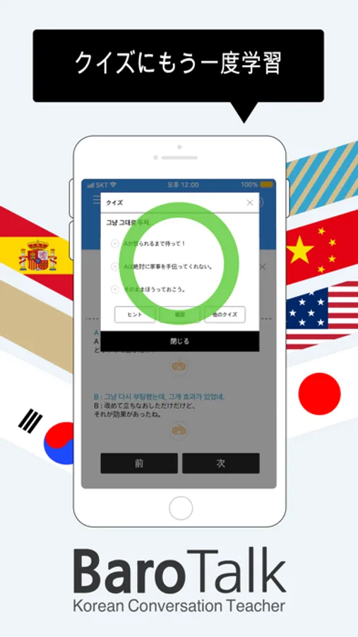 「BaroTalk-日本語会話」は、見て聞くことで終わらず解放見ることができるクイズも用意しました。