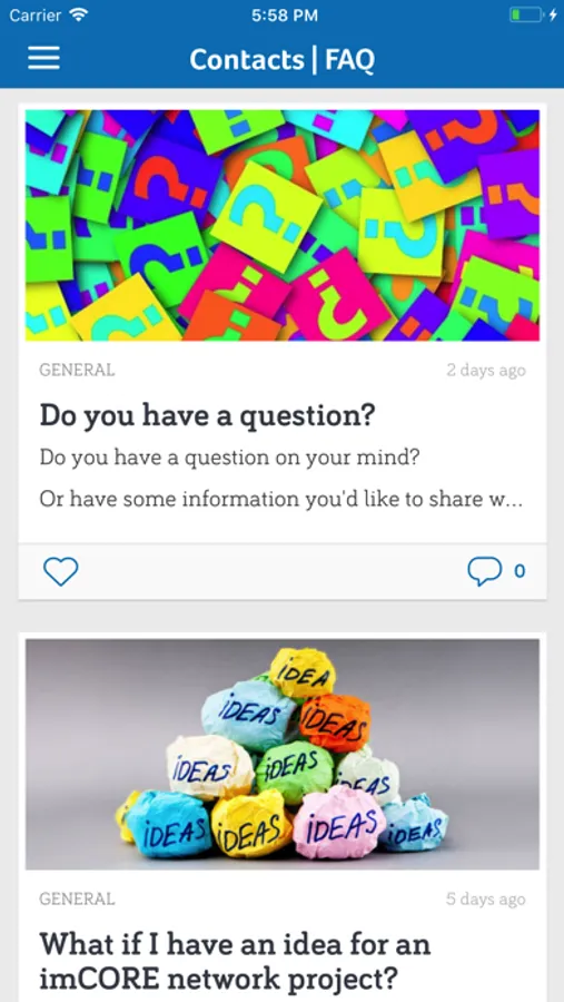 The imCORE app provides you with all the members of the network and all key contacts for your questions.