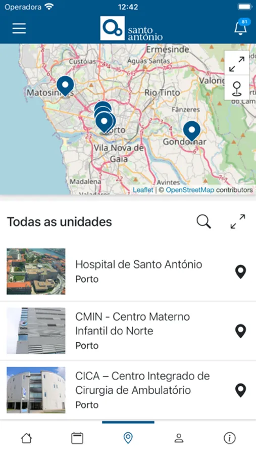 - Consultar informação sobre o local da consulta e/ou exame