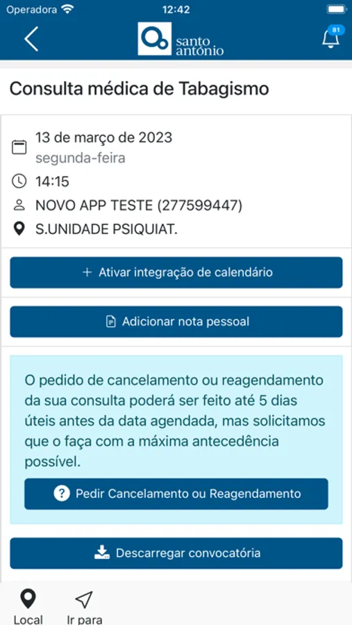 - Solicitar remarcação ou cancelamento da consulta, de acordo com a legislação em vigor;