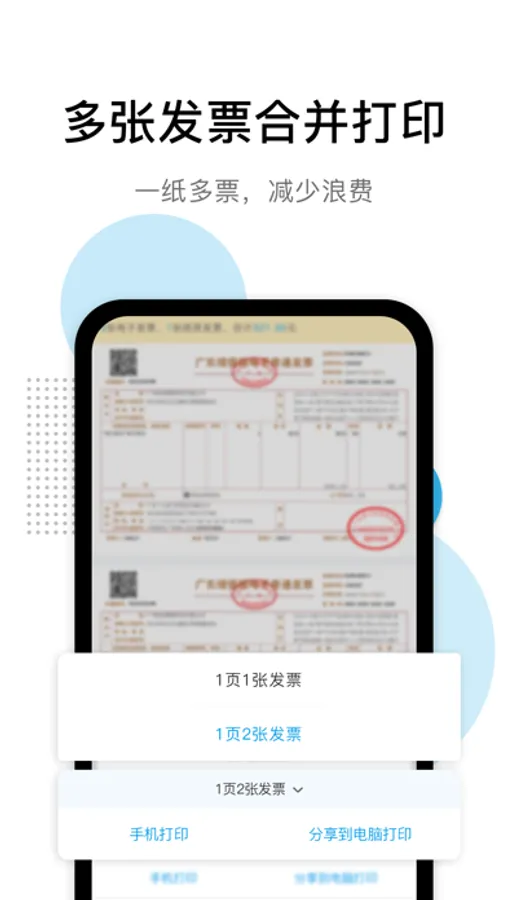 ·发票管理:所有电子发票集中管理,分类统计,信息一目了然;支持批量打印,一键生成打印单,报销只需打印一次;所有发票信息云端存储,安全不丢失