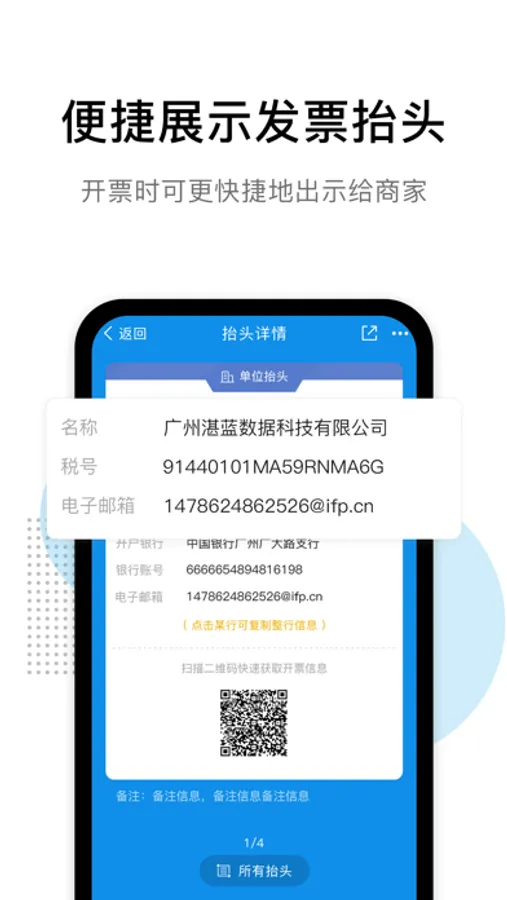 ·发票抬头:只需输入关键字名称即可自动补全发票抬头;点击复制整行,开票不再麻烦