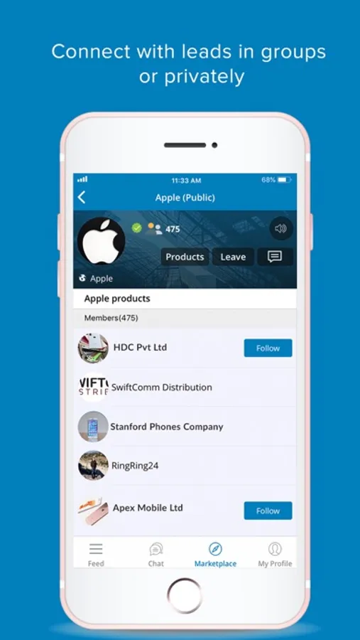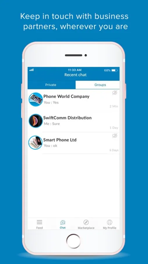* Chat/Group chat: You can interact with other users with featured chat section in the app, you have group chat under various Marketplace topics, so similar user can get in single group to interact on common technology.