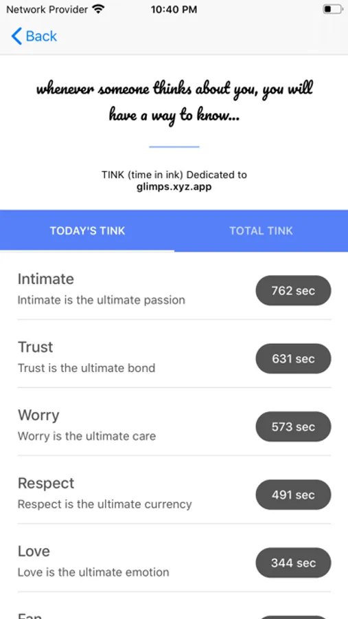 We created the world's most silent and wordless form of universal communication. We call it tink. Time in ink. You are thinking about your friend, no needs of words, you can just send her/him a few tinks of your life. She /he would know you were thinking about them. This is such a crucial piece of information. Just to know someone was thinking about me, gives a sense of empowerment.