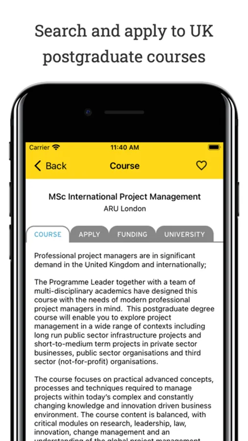 Not sure what to study? Our course search helps you find the perfect postgraduate courses from the tens of thousands of options available at UK universities. Our detailed course listings provide you with information about Entry Requirements, English Language Requirements, and relevant scholarship options, to help you make an informed choice about what to study and where.