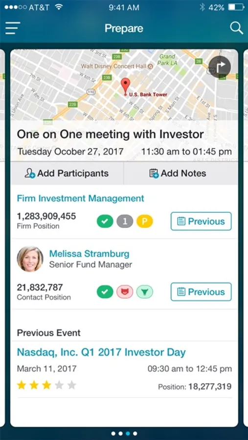 Nasdaq IRO on the GO is designed specifically for the IRO attending conferences or on roadshows that needs quick and easy access to their investor outreach program. IRO GO provides the tools to perform last minute preparation as you are walking into a meeting as well as quickly accomplish follow up tasks walking out of a meeting. IRO on the GO is supported on iPhone only.
