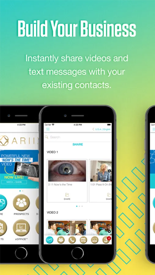 Build Your Business: Instantly share videos and text messages with new prospects or your existing phone contacts.