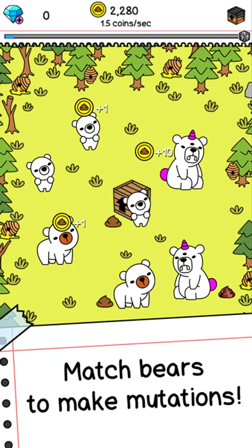 • Use bear eggs to earn coins, buy new creatures and make even more money