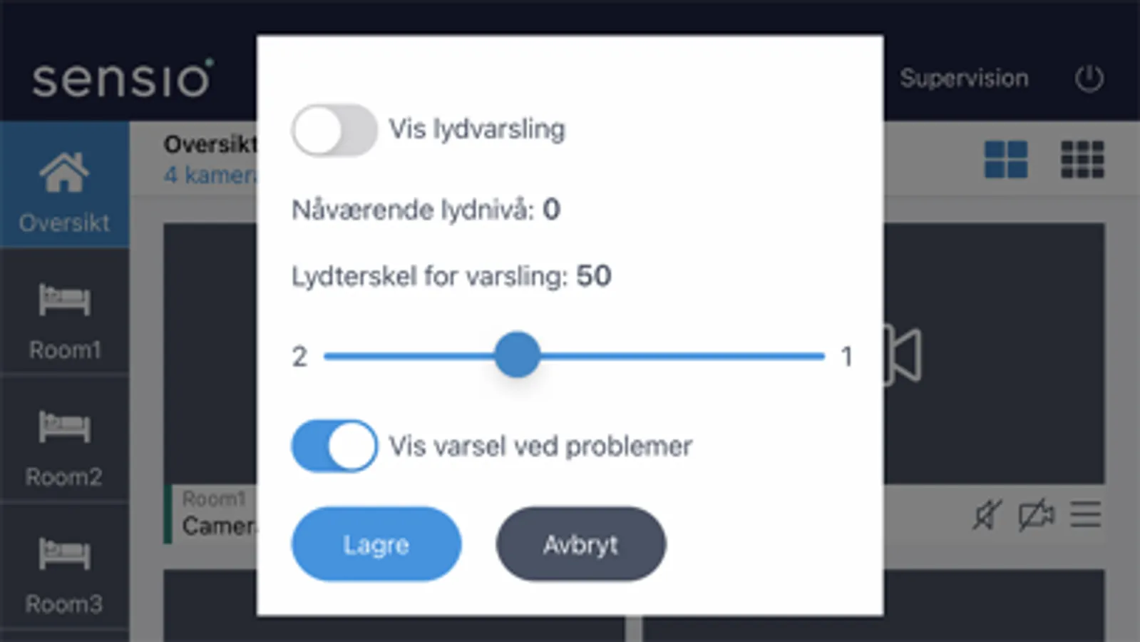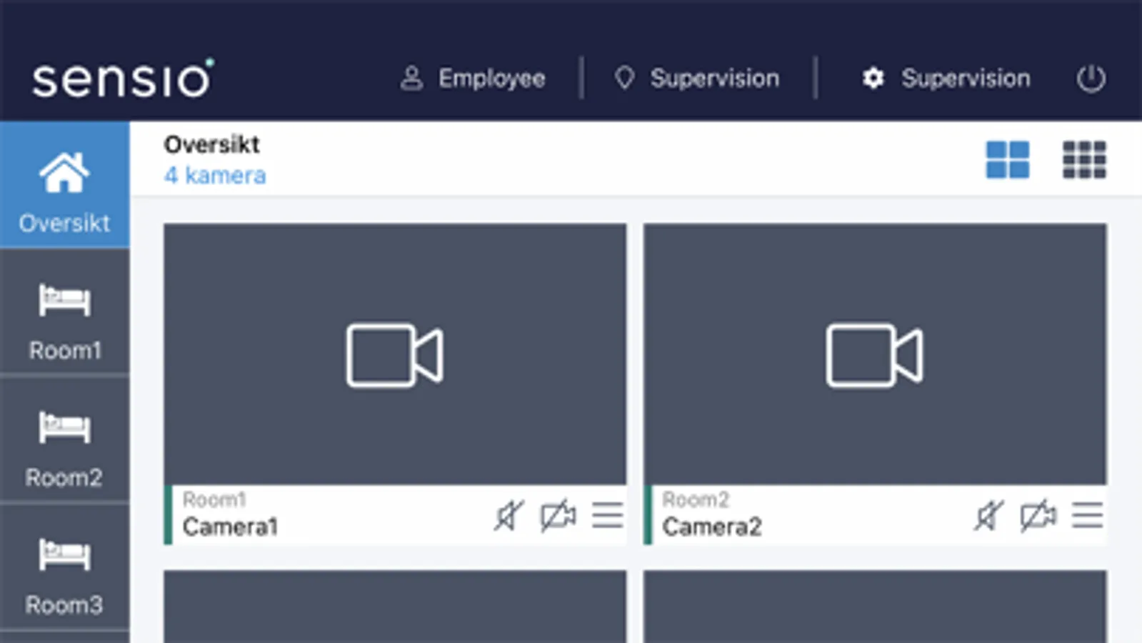 Sensio Vision gir ansatte tilgang til punktvis eller kontinuerlig videotilsyn av pasienter og brukere med behov for dette. Løsningen muliggjør tilsyn med lyd og/eller bilde som kan tilpasses til hver enkelt brukers behov og vedtak.