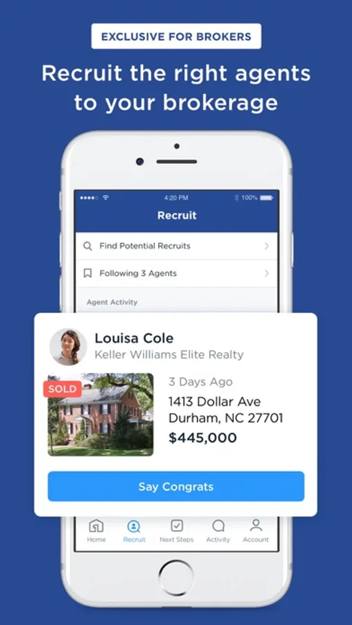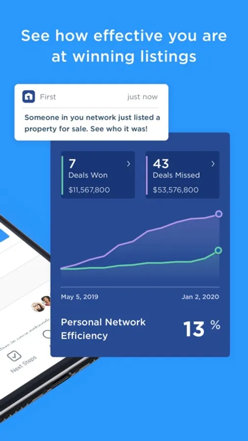 First is a mobile app for winning more business from your network. It is an intelligent coaching system that helps residential real estate agents win more business from their personal network by getting in flow with likely sellers they already know. With our simple, easy-to-use mobile workflow, First will help you win more listings.
