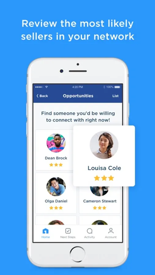 1) A simple view of your personal network - Quickly sync your phone and email contacts, then let First provide an enhanced, organized, and more complete view of your personal network.
