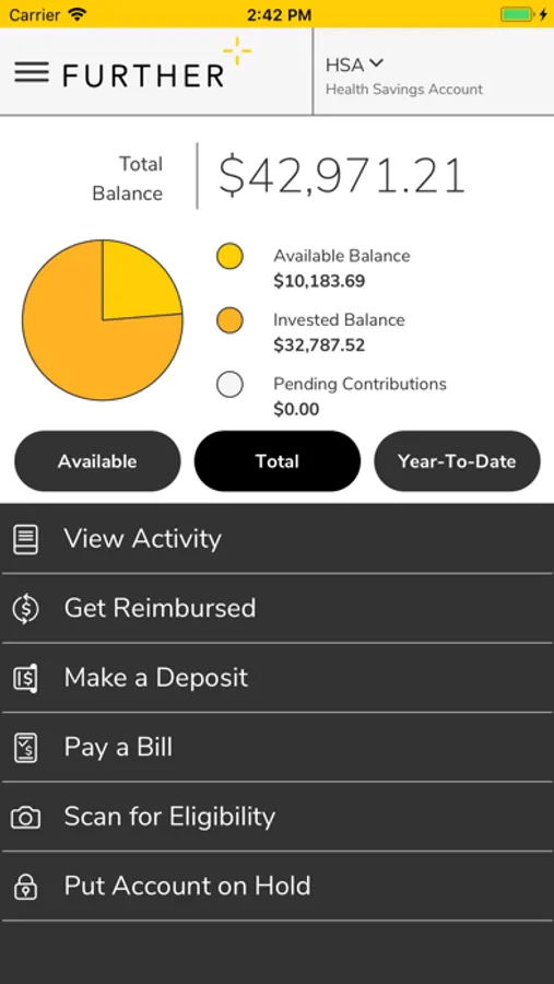 The Further mobile app gives you secure access to your Further accounts whenever you want to. You can use it to manage your Further HSA, FSA, HRA, VEBA, DCAP, or any combination of accounts you may have.