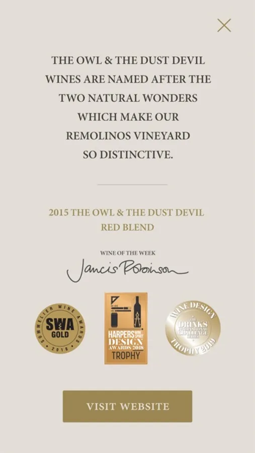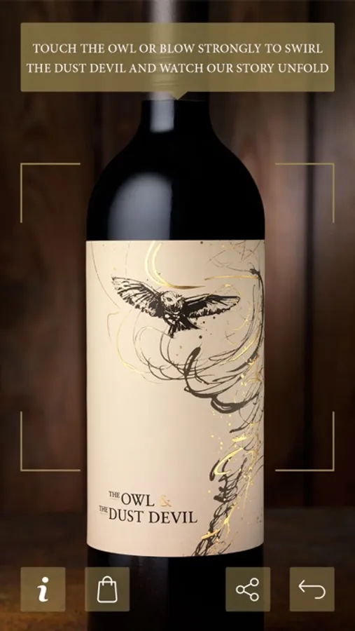 Discover the story of The Owl & The Dust Devil through this augmented reality application. Move the owl through the air or swirl up a whirlwind to create the dust devil, then watch and listen to the mini-animation film! The unique story of The Owl & The Dust Devil in the Remolinos Vineyard will unfold before your eyes.