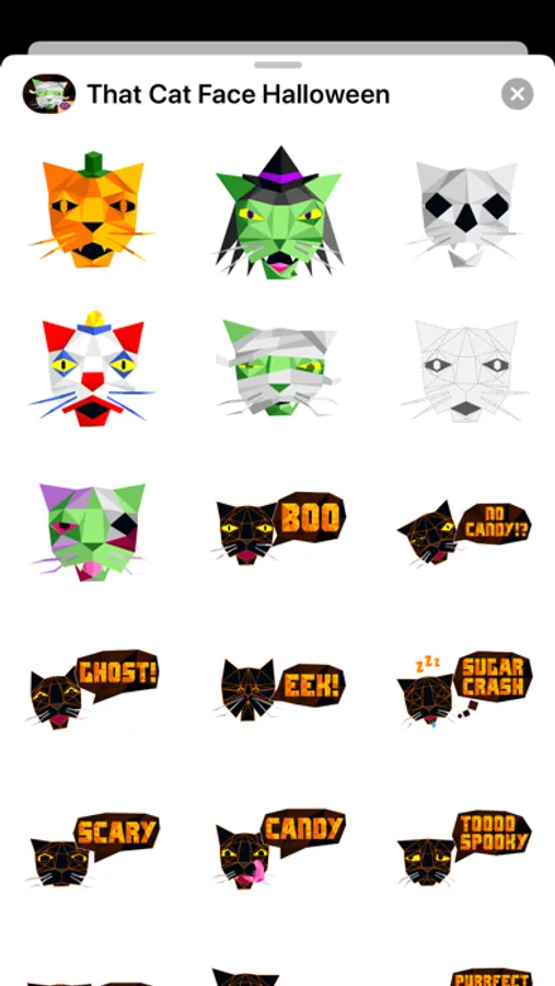 That Cat Face is now celebrating Halloween! That Cat Face Halloween, the spooky sticker pack sequel to That Cat Face, is filled with many Halloween-themed kitty stickers for you to share with friends and family.