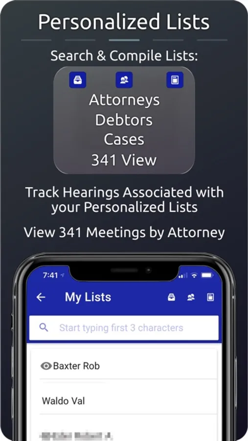 c. pulls down 341 hearings for your team of attorneys filterable by individual attorney names.