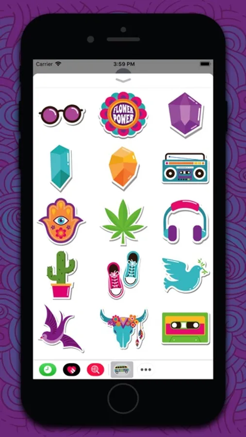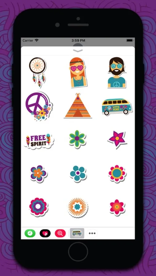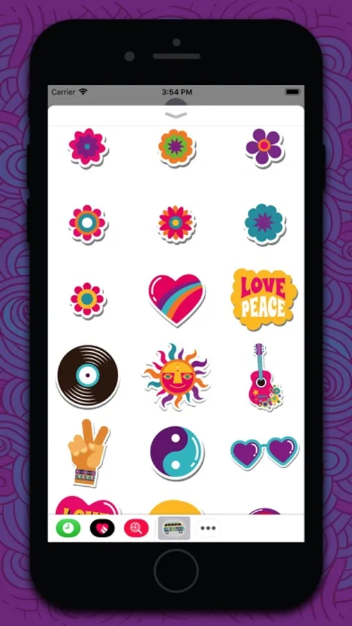 Spread some peace and love with this Bohemian sticker pack. Jammed with flowers, peace signs, feathers, a bus and all sorts of hippie paraphernalia, you're sure to get some love on!