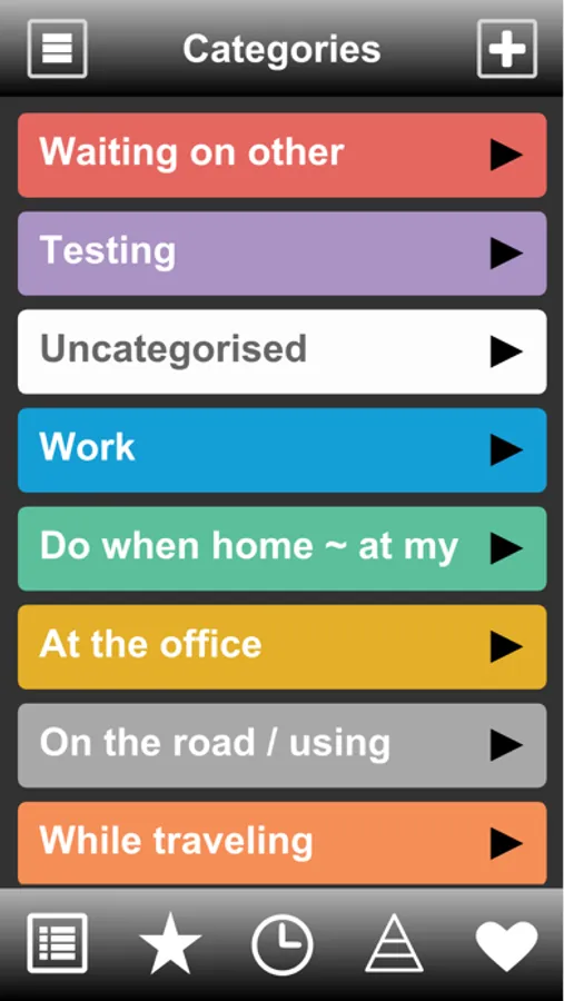 - View and filter by category e.g. see only work jobs, or don't show work jobs