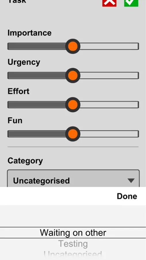 - Change importance, urgency etc by dragging tasks up or dewing in their list