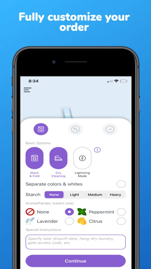 Step 1: Download Washloft and create an account. Just enter your delivery address and phone number and you're ready to schedule your first order!