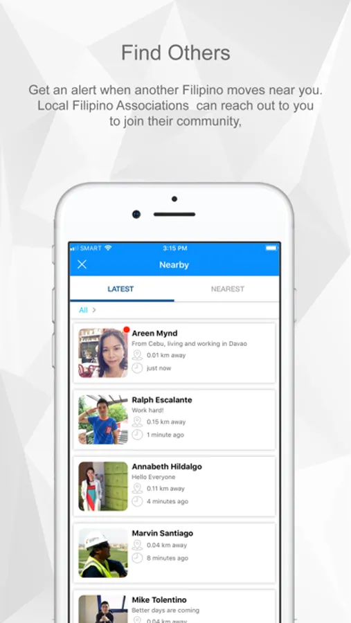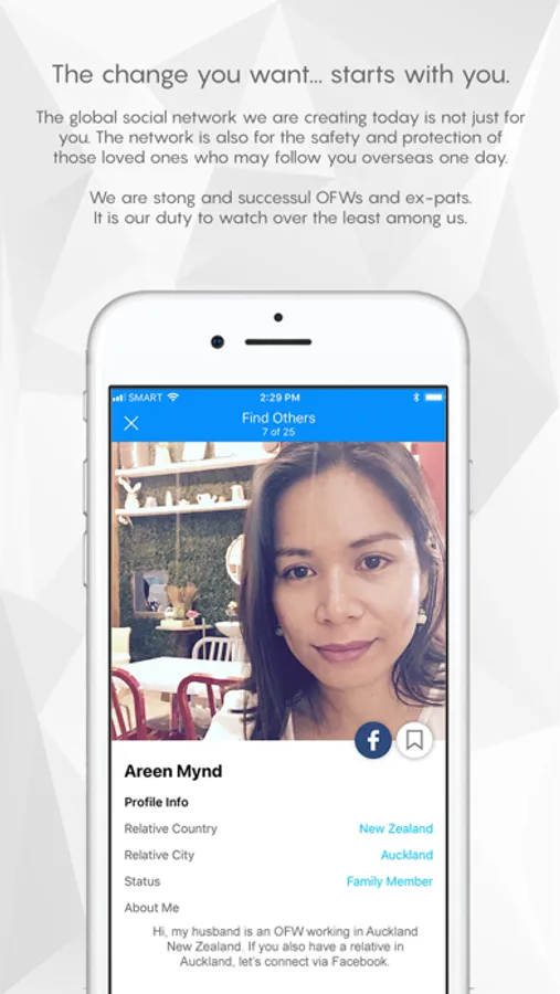 - Find Others – Uses geo-location data to connect you with other OFWs, ex-pats and